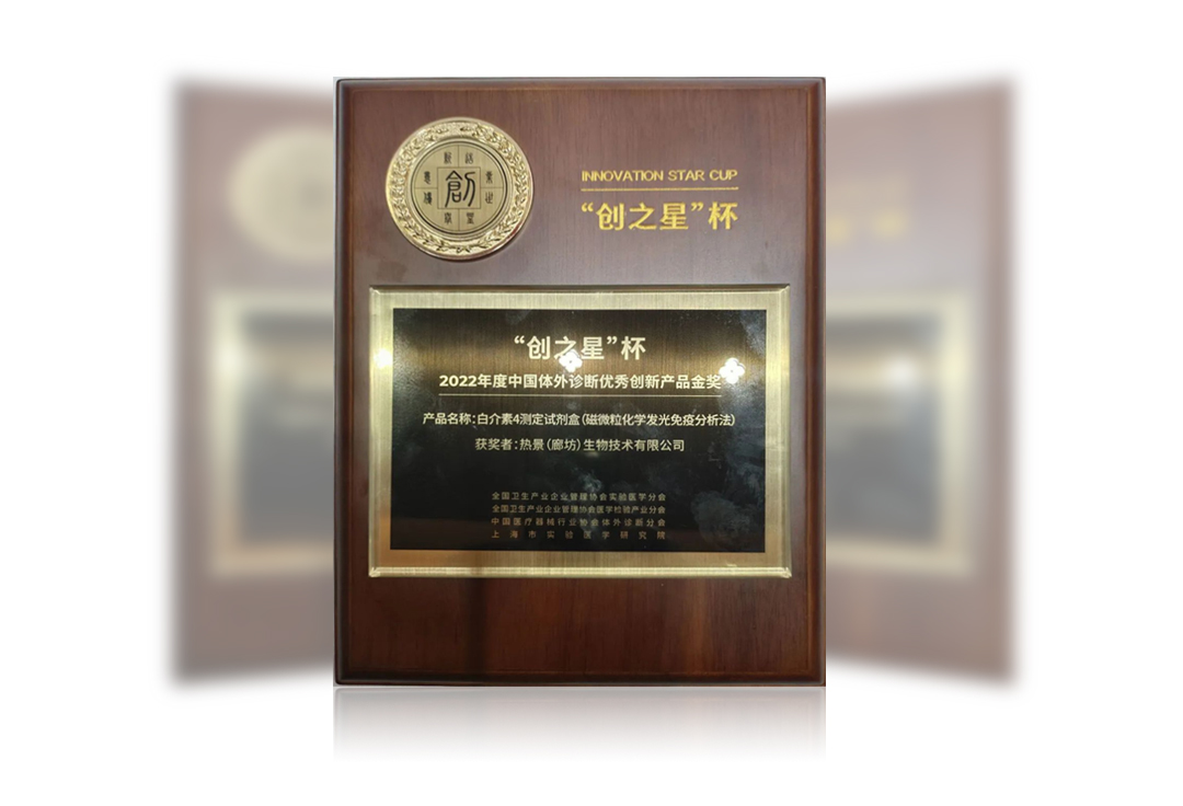 在5月27日“創(chuàng )之聲”第八屆中國實(shí)驗醫學(xué)大會(huì )現場(chǎng),熱景生物旗下熱景(廊坊)生物技術(shù)有限公司生產(chǎn)的專(zhuān)有特色細胞因子系列產(chǎn)品,榮獲2022年度“創(chuàng )之星”杯中國體外診斷優(yōu)秀創(chuàng )新產(chǎn)品金獎。