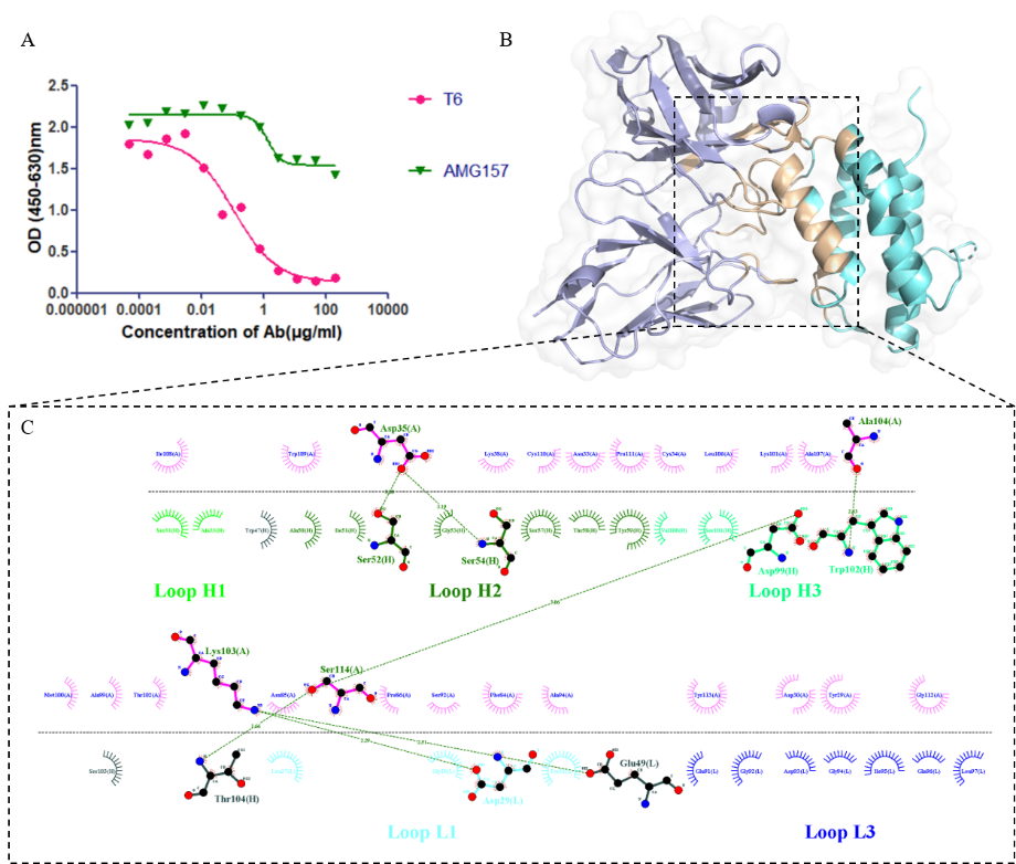 來(lái)源于上皮細胞的細胞因子胸腺基質(zhì)淋巴生成素(thymic stromal lymphopoietin,TSLP)參與哮喘炎癥通路的啟動(dòng)。帶正電荷的TSLP與胸腺基質(zhì)淋巴生成素受體(TSLPR)形成二元復合物,隨后與白細胞介素-7受體α鏈(IL-7Rα)結合形成三元復合物,該復合物在共表達TSLPR和IL-7Rα的細胞中通過(guò)STAT5通路激活信號轉導,導致炎性細胞因子的釋放。因此,靶向TSLP及其信號通路的抗體藥物被認為是治療哮喘的有效策略。