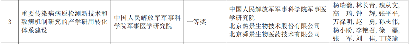 近日,北京市人民政府發(fā)布《北京市人民政府關(guān)于2023年度北京市科學(xué)技術(shù)獎勵的決定》,中國人民解放軍軍事科學(xué)院軍事醫學(xué)研究院、北京熱景生物技術(shù)股份有限公司、北京舜景生物醫藥技術(shù)有限公司聯(lián)合申報的“重要傳染病病原檢測新技術(shù)和致病機制研究的產(chǎn)學(xué)研用轉化體系建設”項目,榮獲“2023年北京市科學(xué)技術(shù)進(jìn)步獎一等獎”,這是繼公司獲得國家技術(shù)發(fā)明二等獎、中華醫學(xué)科技獎二等獎、民營(yíng)科技發(fā)展貢獻獎科技創(chuàng )新一等獎、上海市科學(xué)技術(shù)二等獎之后的又一重磅獎項,充分體現了熱景生物在高水平科技自立自強、打造科技創(chuàng )新核心競爭力道路上的不懈追求和綜合實(shí)力。