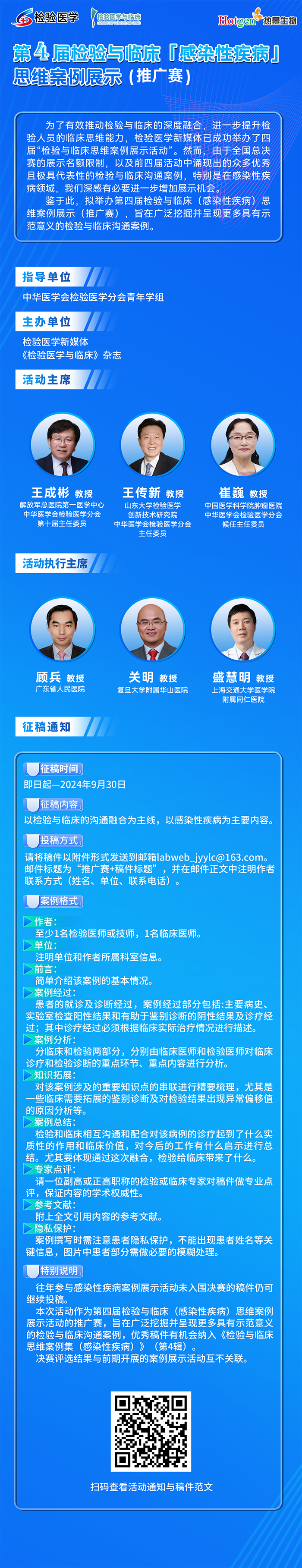 隨著(zhù)檢驗醫學(xué)專(zhuān)業(yè)的飛速發(fā)展,多學(xué)科協(xié)作診療(MDT)的深入推進(jìn),檢驗醫學(xué)在臨床診療過(guò)程中的地位越來(lái)越高、學(xué)術(shù)地位日益凸顯,并被臨床醫生稱(chēng)為“醫生的眼睛”和“醫學(xué)界的偵探”。同時(shí),檢驗醫學(xué)是聯(lián)系基礎醫學(xué)與臨床醫學(xué)的紐帶,是多學(xué)科的組合體?,F代檢驗醫學(xué)倡導以患者為中心,以疾病診斷和治療為目的,加強檢驗醫學(xué)人員學(xué)習臨床知識,開(kāi)展檢驗與臨床對話(huà)顯得尤為重要。