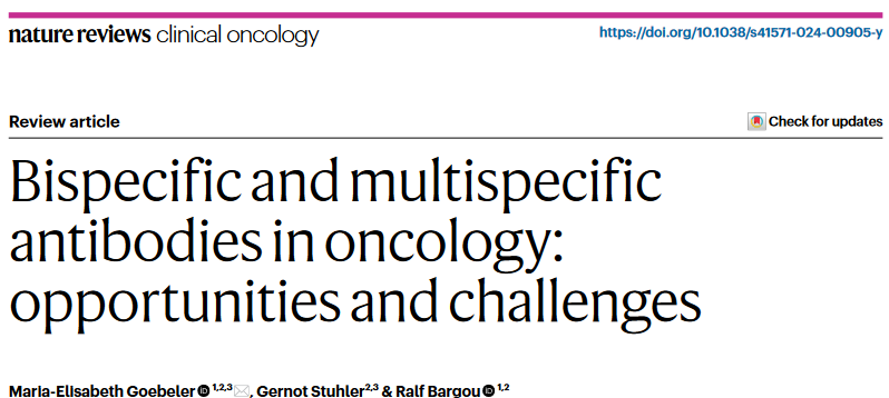 文章轉自:BioMed科技,點(diǎn)擊訪(fǎng)問(wèn)微信鏈接:IF:78.8!Nature系列綜述: 面向腫瘤的雙特異性和多特異性抗體—機遇與挑戰