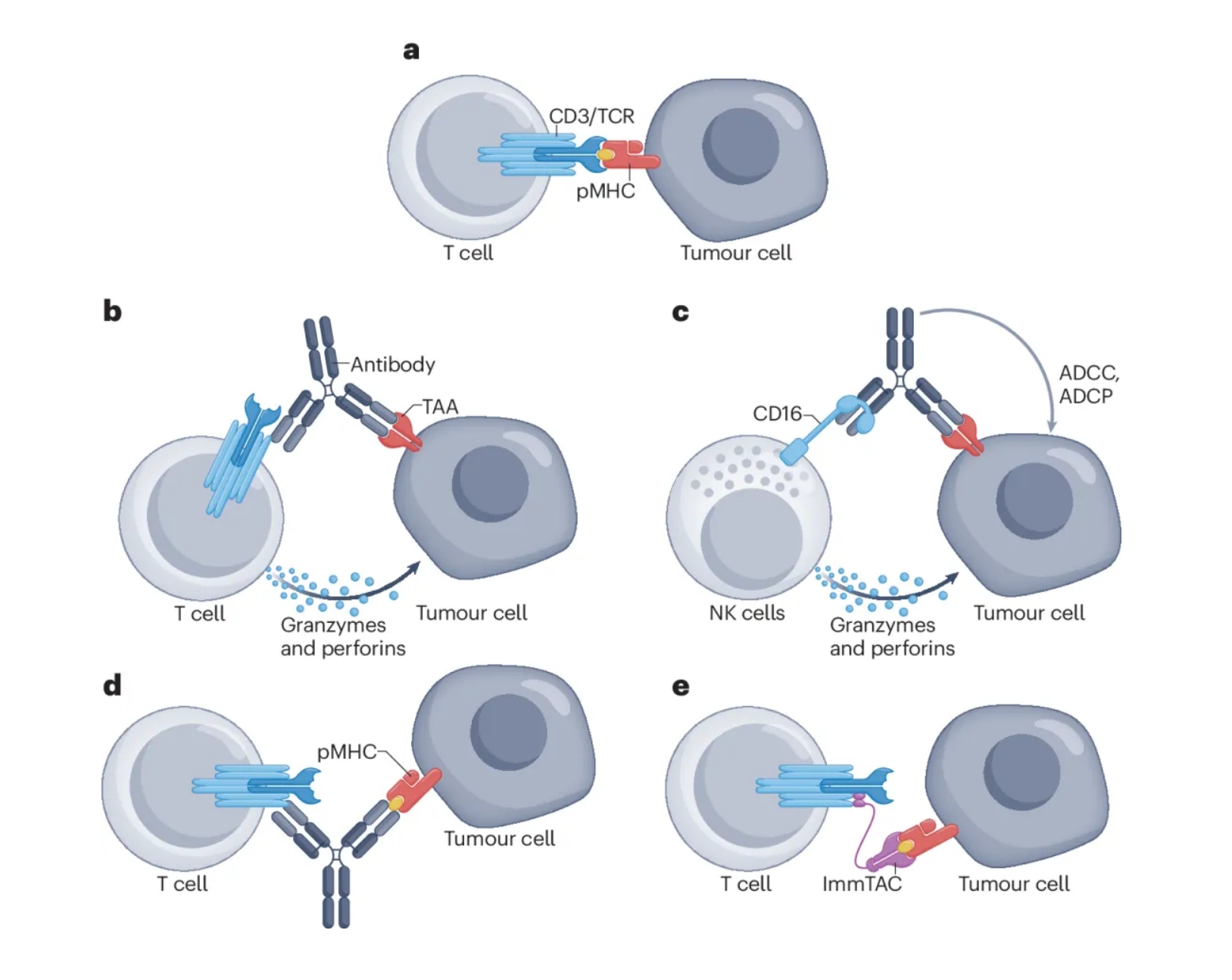 具體來(lái)說(shuō),靶向T細胞、自然殺傷(NK)細胞或巨噬細胞-粒細胞上表達的抗原的雙特異性抗體,如CD3、CD16(FcγRIIIa)或CD64/SIRPα,能夠使潛在的各種免疫效應細胞選擇性地轉向腫瘤特異性靶抗原。而設計用于靶向一種以上腫瘤特異性細胞表面抗原的雙特異性或多特異性抗體能夠更精確地區分惡性細胞和非惡性細胞,并可能比單克隆抗體更能提高治療活性。