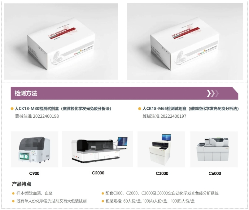熱景生物新品-CK18(化學(xué)發(fā)光法國內第一證)采用先進(jìn)的化學(xué)發(fā)光免疫分析技術(shù),具備極高的靈敏度和特異性,能夠準確檢測血清中的CK18-M30和CK18-M65水平。