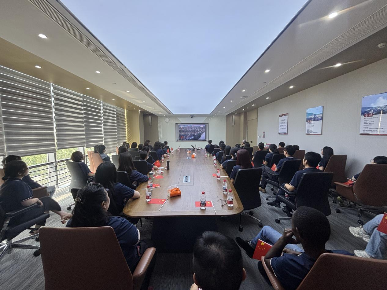 直播觀(guān)看過(guò)程中,公司員工全神貫注,當受閱官兵邁著(zhù)堅定整齊的步伐、颯爽英姿震撼全場(chǎng),當國產(chǎn)現役主戰裝備相繼亮相彰顯國家強盛國力,當承載功勛榮譽(yù)的戰旗方隊與呼嘯而過(guò)的空中梯隊依次登場(chǎng)時(shí),在場(chǎng)人員無(wú)不心潮澎湃,無(wú)不為之贊嘆,響起持久而熱烈的掌聲,以表達對革命先輩的崇高敬意。