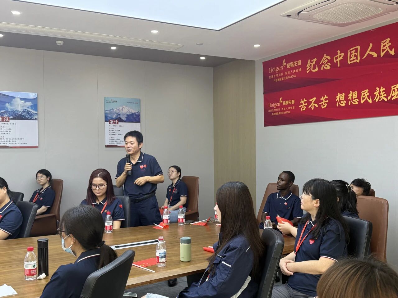在觀(guān)看閱兵式后的交流討論中,各部門(mén)代表紛紛上臺發(fā)言,分享自己觀(guān)看九三閱兵儀式后的感受和體會(huì )。熱景生物副總經(jīng)理石永沾表示,“看到咱們國家國防這么強,我特別自豪!新時(shí)代青年就得記著(zhù)歷史、珍惜和平,就如同閱兵式上的將士們堅守崗位、履行使命一般,為企業(yè)發(fā)展和國家建設貢獻自己的力量,為守護人類(lèi)健康貢獻自己的力量?!?/span>